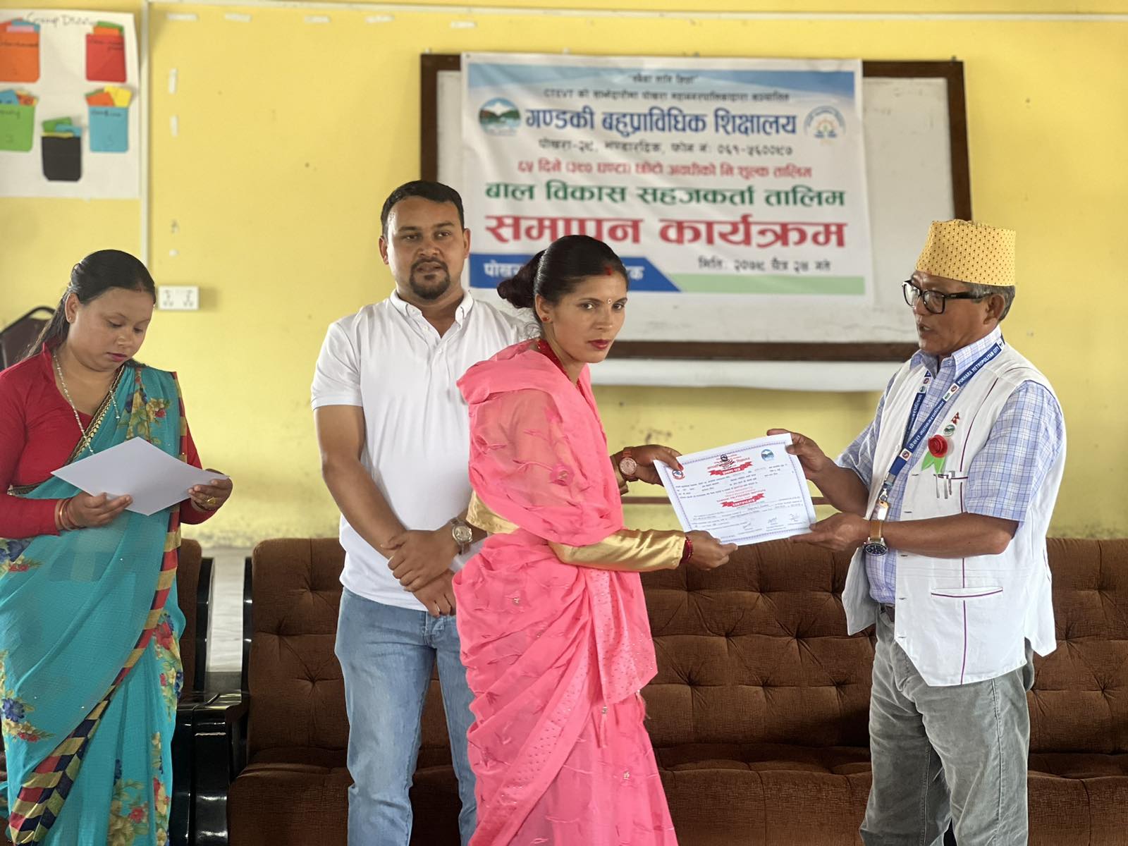 स्थानीय महिलाहरुको सोचाइ र विचारमा यस्तो परिवर्तन ल्याएको हो पोखरा महानगरपालिका अन्तर्गत गण्डकी बहुप्राविधिक शिक्षालयले । स्थानीय महिलाको क्षमता अभिवृद्धिसहित बाल शिक्षण सिकाइलाई प्रभावकारी बनाउने उद्देश्यले शिक्षालयले गत आर्थिक वर्षयता विभिन्न समयमा बाल शिक्षण सहजकर्ता तालिमका लागि दर्खास्त आह्वान गर्दै आइरहेको छ ।