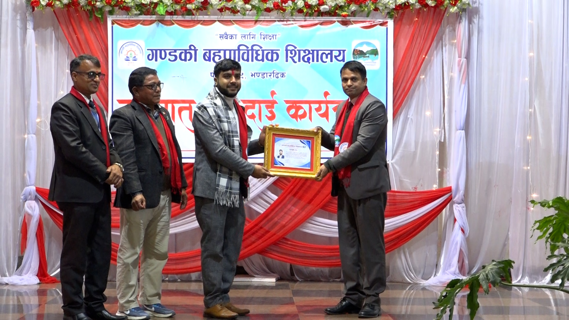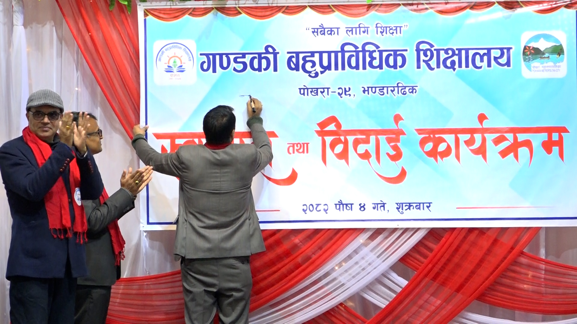 गण्डकी बहुप्राविधिक शिक्षालयका निर्देशक डा. टेकारायण पौडेलको अध्यक्षताका भएको कार्यक्रममा पोखरा महानगरपालिकाका प्रमुख प्रशासकिय अधिकृत मुक्तिराम अर्यालको विशेष उपस्थितिमा नवआगन्तुक विद्यार्थीलाई शिक्षालयमा स्वागत र पुराना विद्यार्थीलाई विदाई गरिएको हो । कार्यक्रमका स्वागत मन्तव्य शिक्षालयका शैक्षिक प्रमुख सरोज अधिकारीले गरेका थिए ।